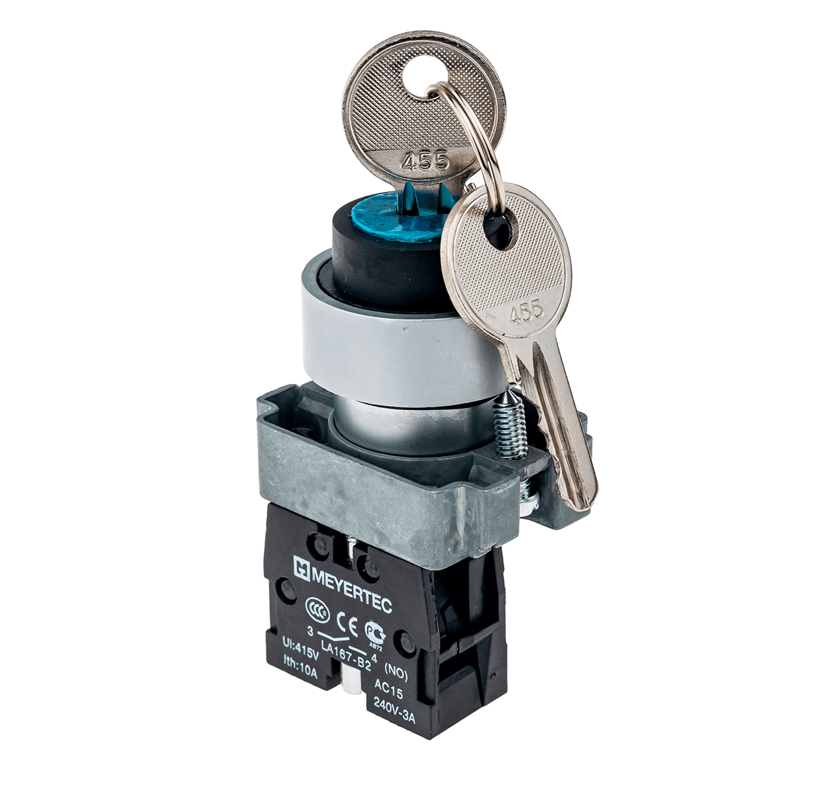 Переключатели MTB2-BGZ112 предназначены для управления электромагнитными контакторами, пускателями, реле и другими вторичными цепями. Переключатели выполнены в высоком пыле- и влагозащищенном исполнении, а также имеют высокую степень ударопрочности. Ключ обеспечивает дополнительный уровень безопасности.